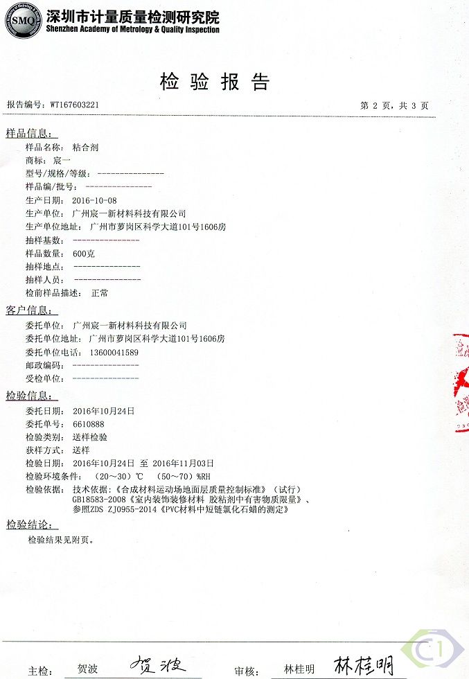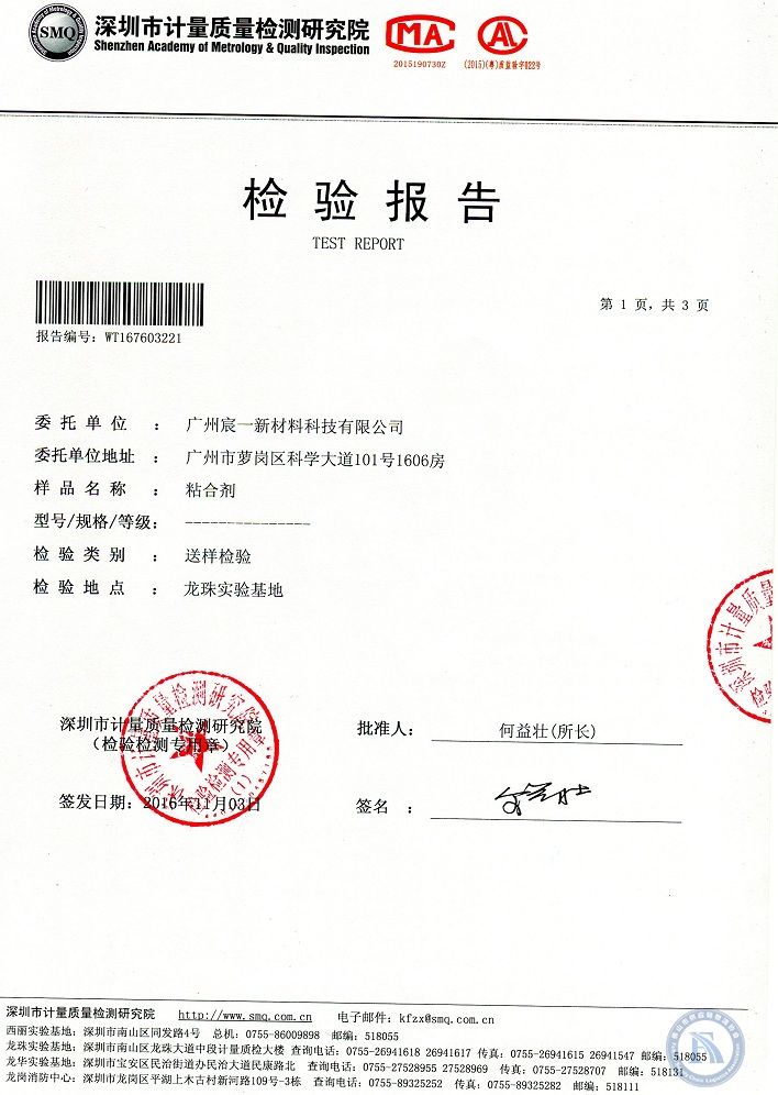 深圳市计量质量检测研究院关于粘合剂的检验报告